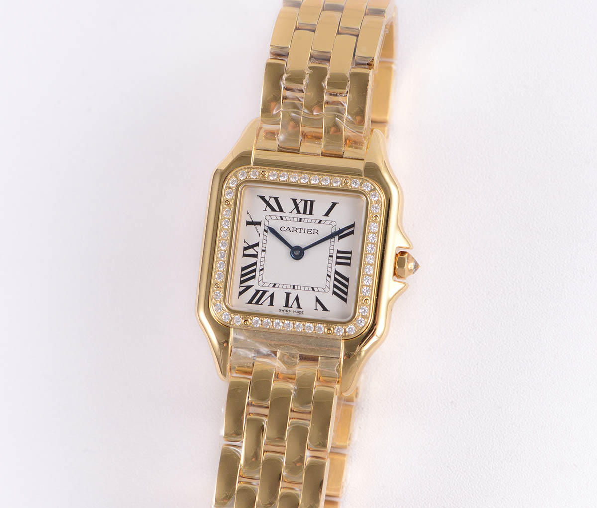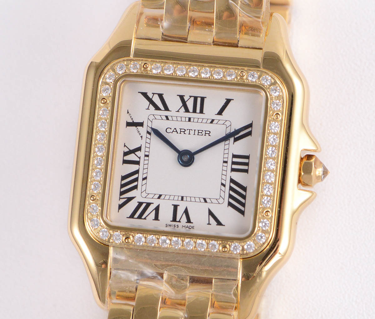 까르띠에 팬더 27mm YG 화이트 다이얼, YG 브레이슬릿 론다 쿼츠 다이야몬드 베젤