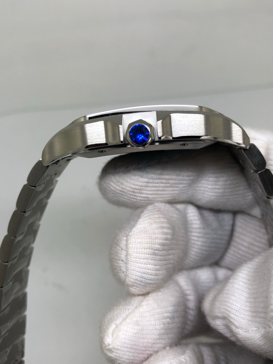 무브먼트: 플래티넘 도금 일본산 미요타 9015 자동, 28800bph, 각인 로터 및 브리지 포함