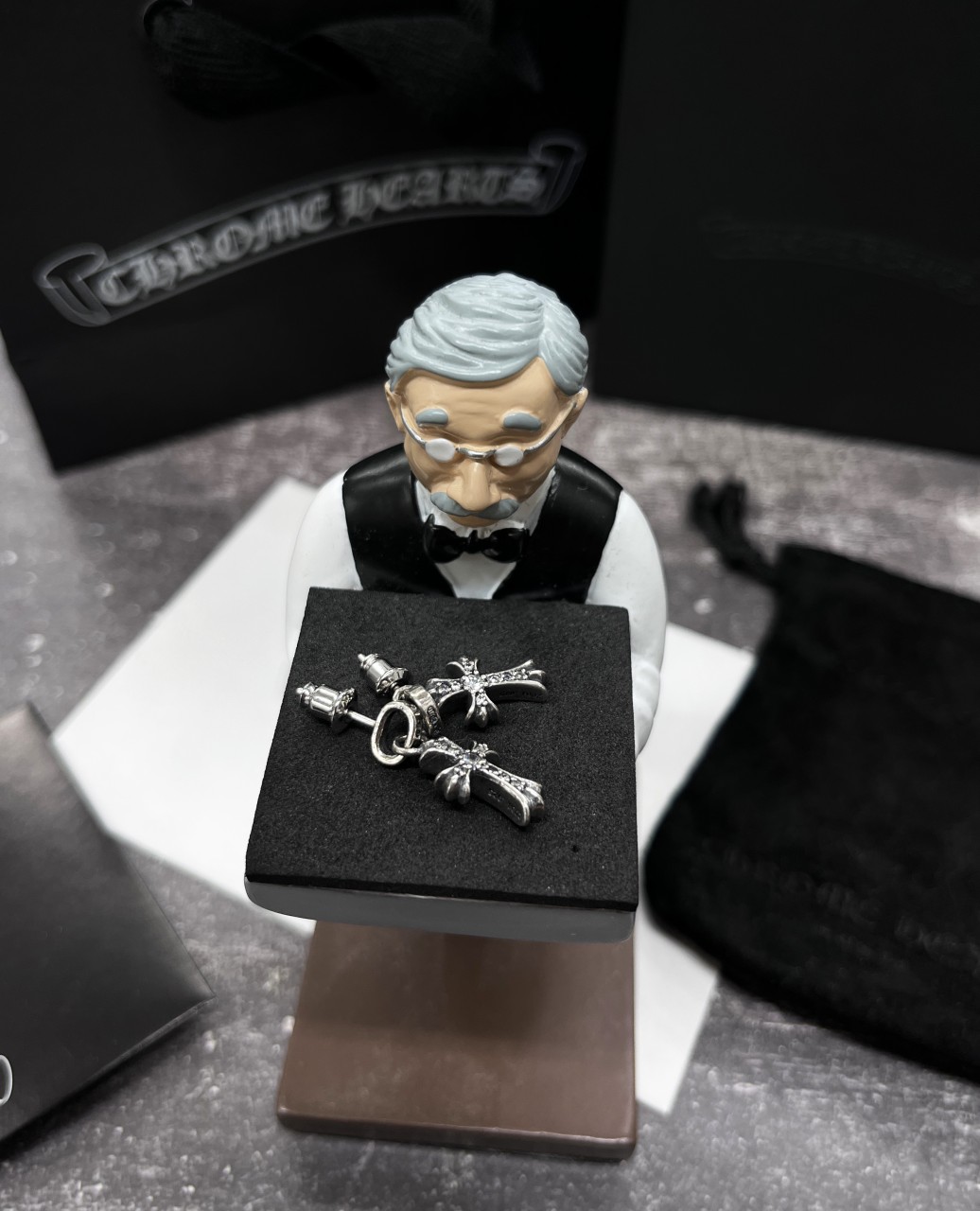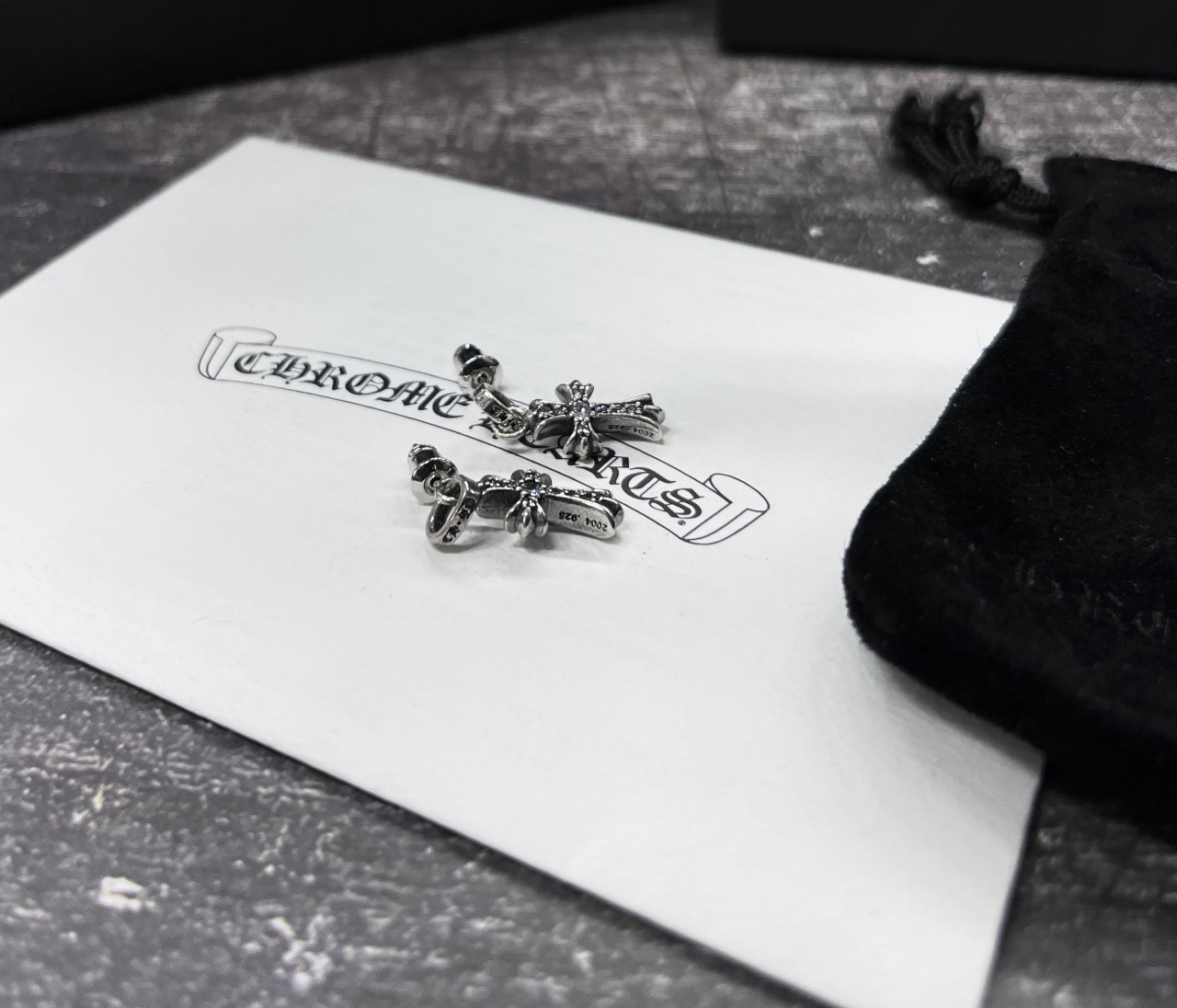 [국내배송] 크롬하츠 PLUS 다이아 크로스 참 페이퍼 라인 귀걸이