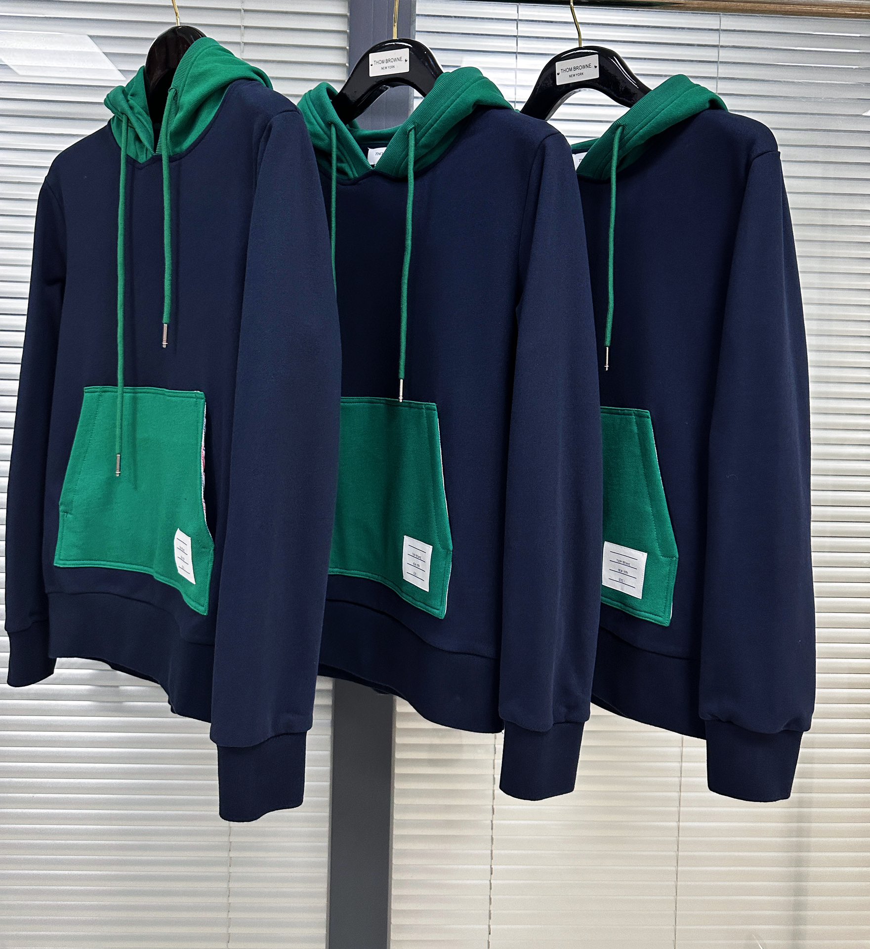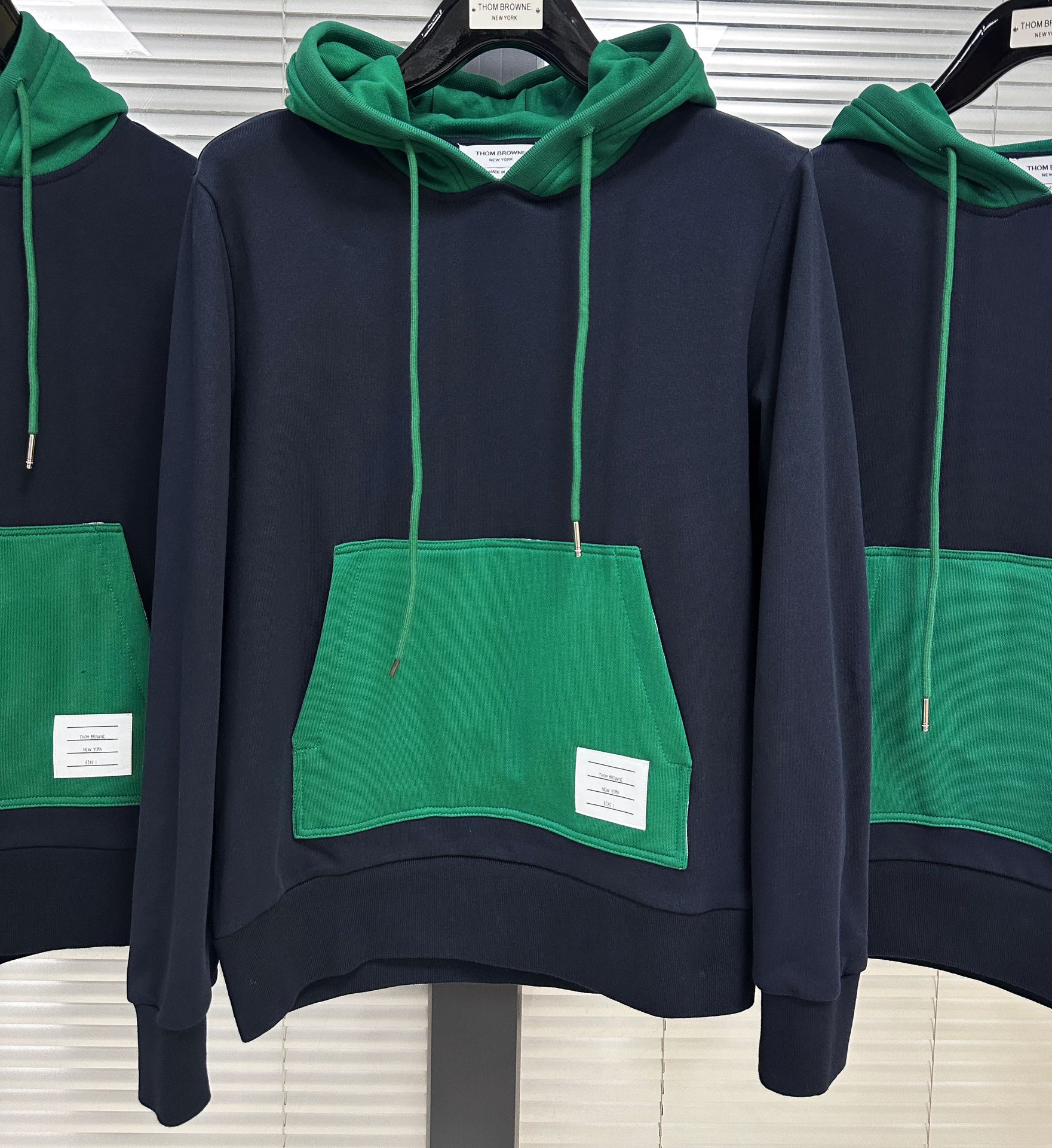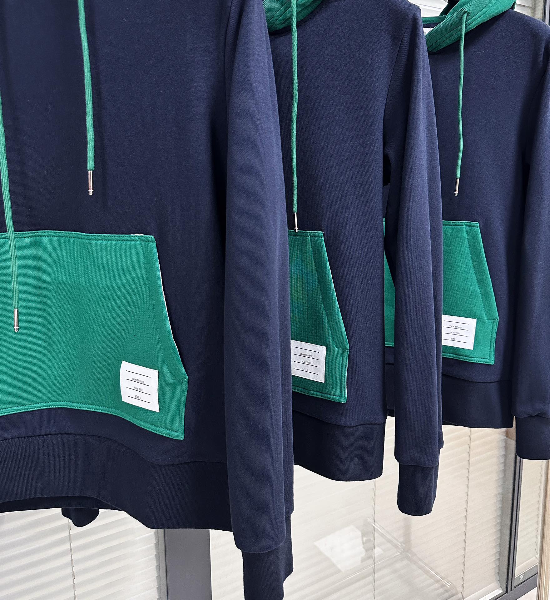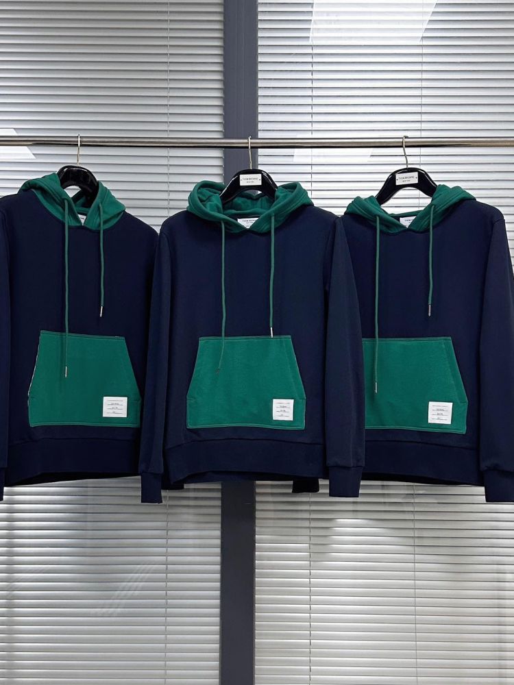 톰브라운 컬러 블락 풀오버 후드
