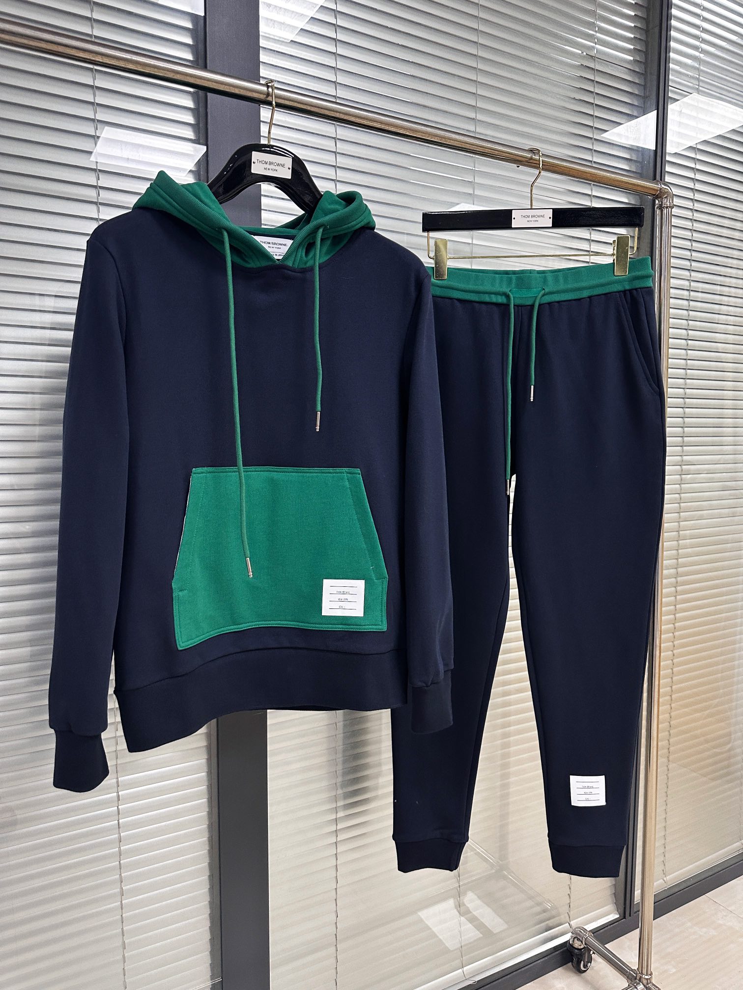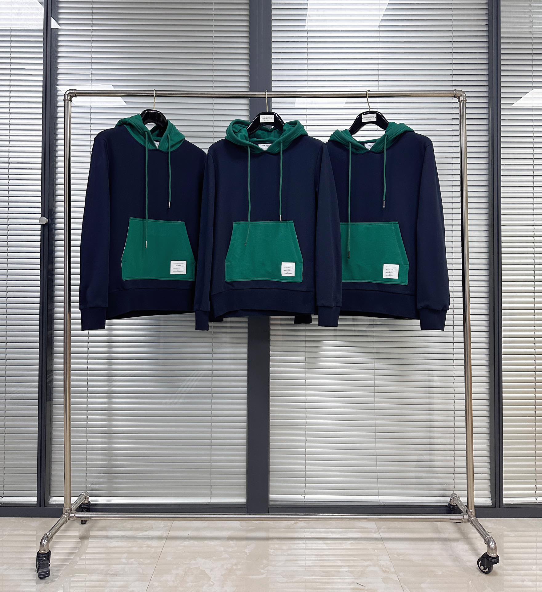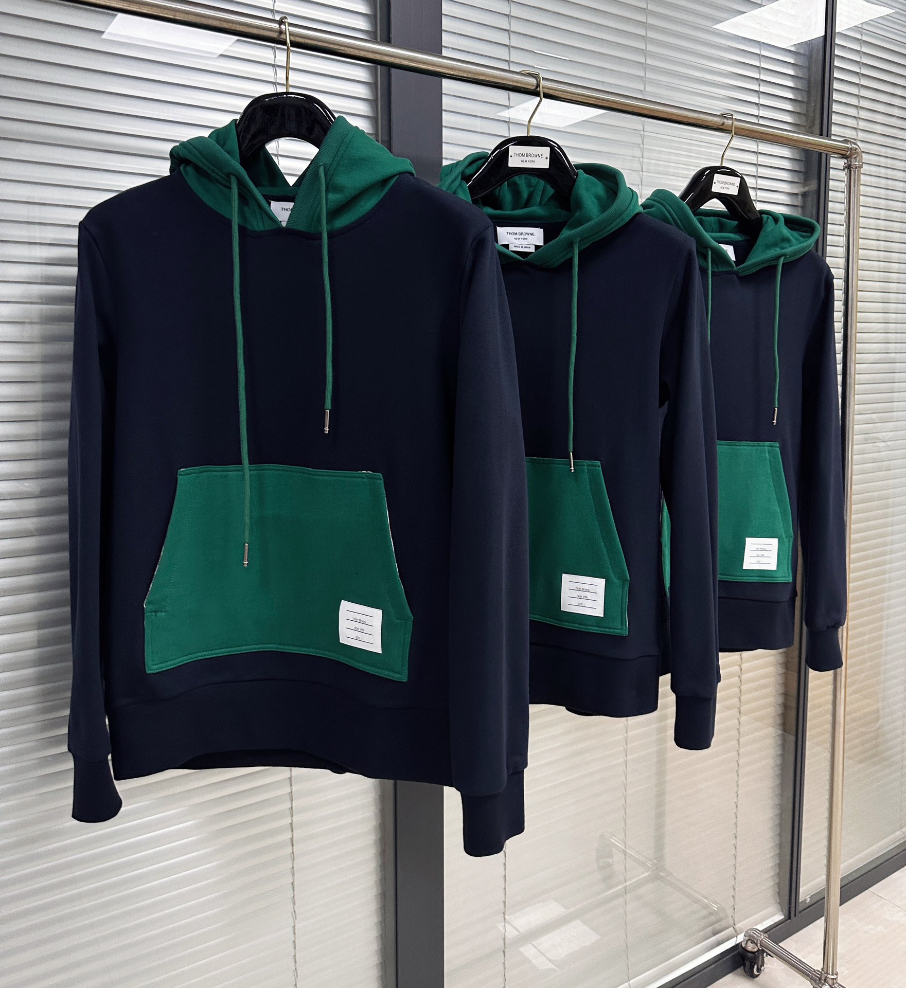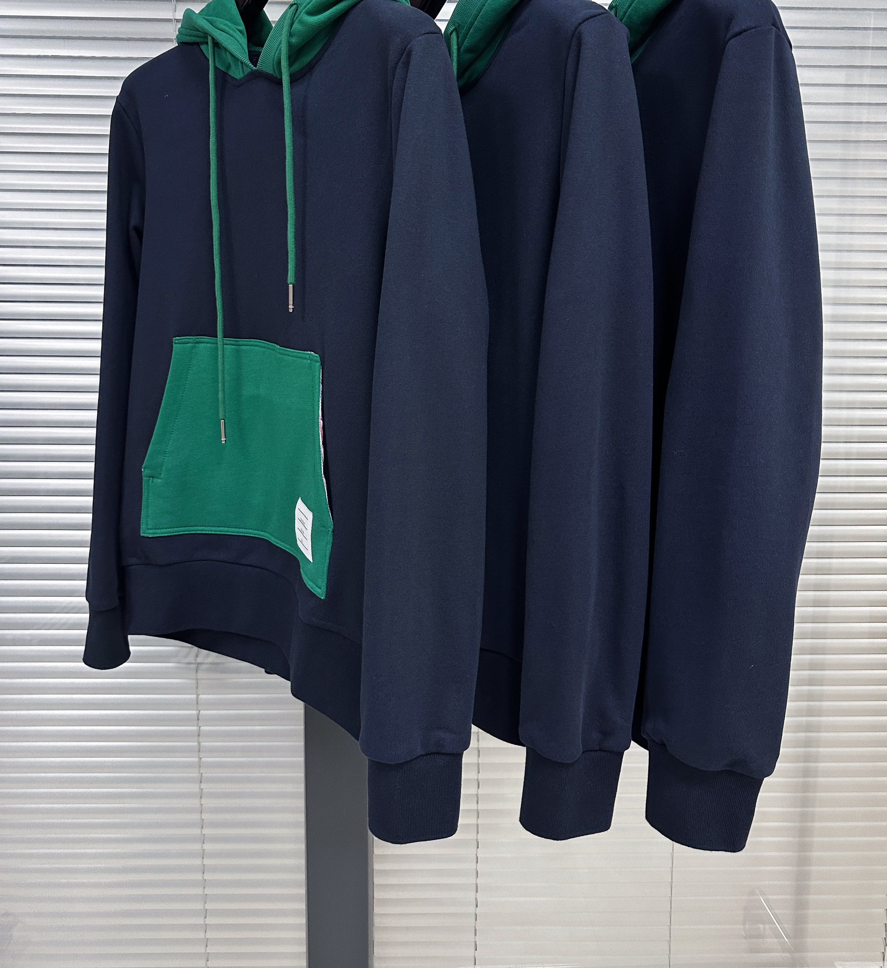 톰브라운 컬러 블락 풀오버 후드